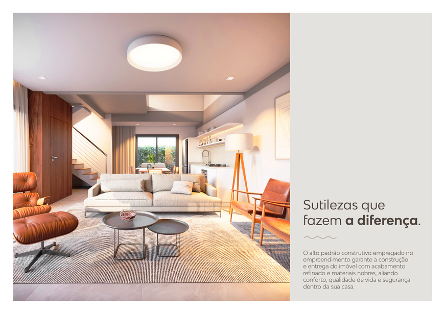 Cada residência foi planejada para proporcionar o máximo de conforto e sofisticação, com acabamentos e materiais nobres que refletem qualidade e durabilidade. Desde os pisos até as ferragens, cada detalhe foi cuidadosamente selecionado para garantir um ambiente elegante e moderno.